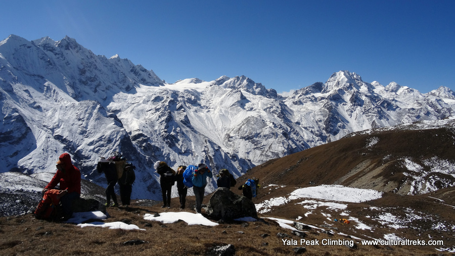 The Yala Peak expedition passes through Langtang National Park, known for its rich biodiversity, natural beauty, and dramatic landscapes. Along the trail, trekkers may encounter blooming red rhododendrons and, with luck, rare wildlife such as the Snow Leopard or Red Panda. The Langtang Valley itself is renowned as one of the most picturesque in the world. Before the ascent, climbers usually acclimatize at Kyangjin Monastery (3,870m) a popular Buddhist pilgrimage site. Hiking around the surrounding highlands helps with altitude adjustment. The base camp is located at Yala Kharka (4,600m), a yak grazing meadow. Here, the climbing guide provides important information on the route, gear usage, and technical aspects of the climb.
