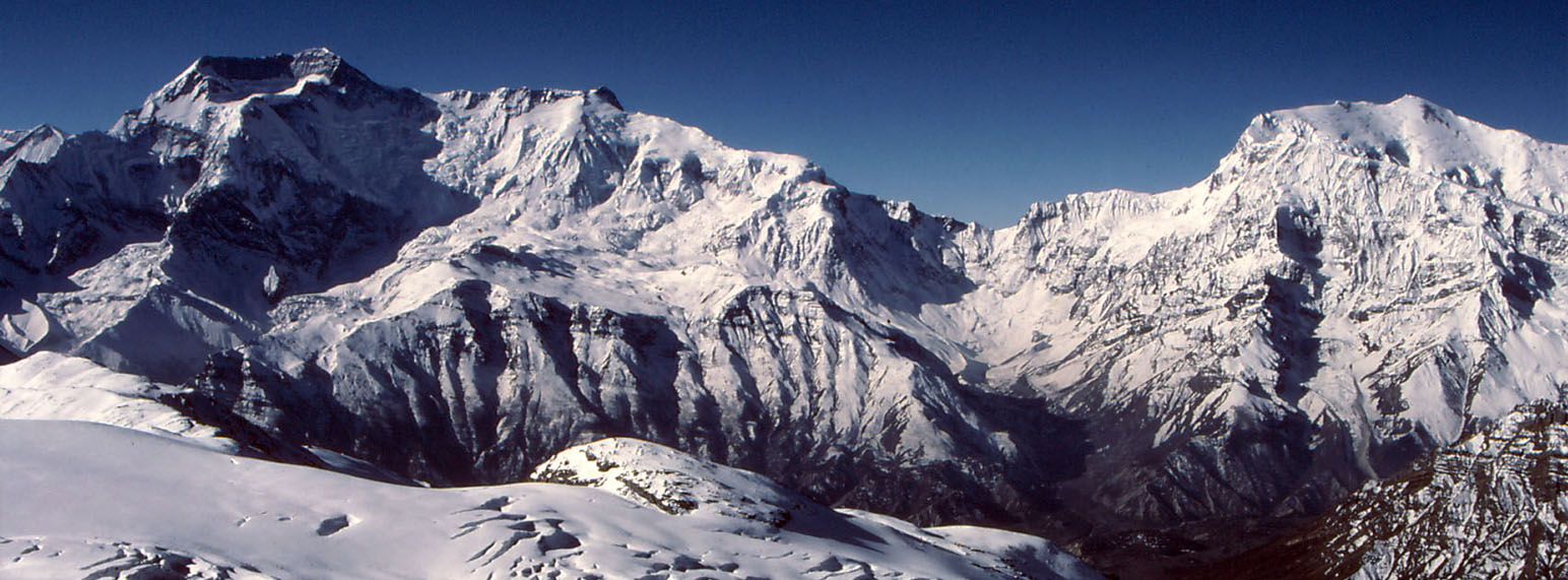 Mt. Annapurna 4th located in the heart of the Annapurna mountain range and is situated between the summits of Annapurna II and Annapurna III by a spectacular ridge that connects all three mountains. This ridge is an amazing wall, which includes Annapurna I (809m), Annapurna II (7,937m), Annapurna III (7,555m), Annapurna IV (7,525m) and Annapurna South (7,220m). The famous Machhapuchhre (fishtail 6,993m) is also located in the Annapurna range. Above Camp I the route from Camp 2 to Camp 3 becomes steeper requiring fixed rope on some of the more difficult sections including a bergschrund that has to be crossed. Camp 3 is at an elevation of 20,500 ft and sits at the junction of the North Ridge and Summit Ridge. It sits on the "Dome" of Annapurna IV and affords us an incredible view of the Summit Ridge. At the crest 6,483m. we will place our Camp III. Here the route turns sharp east and follows the Annapurna crest to the summit of Annapurna IV. It was first climbed in 1955 by a German expedition led by Heinz Steinmetz via the North Face and Northwest Ridge. The summit party comprised Steinmetz, Harald Biller and Jürgen Wellenkamp.
