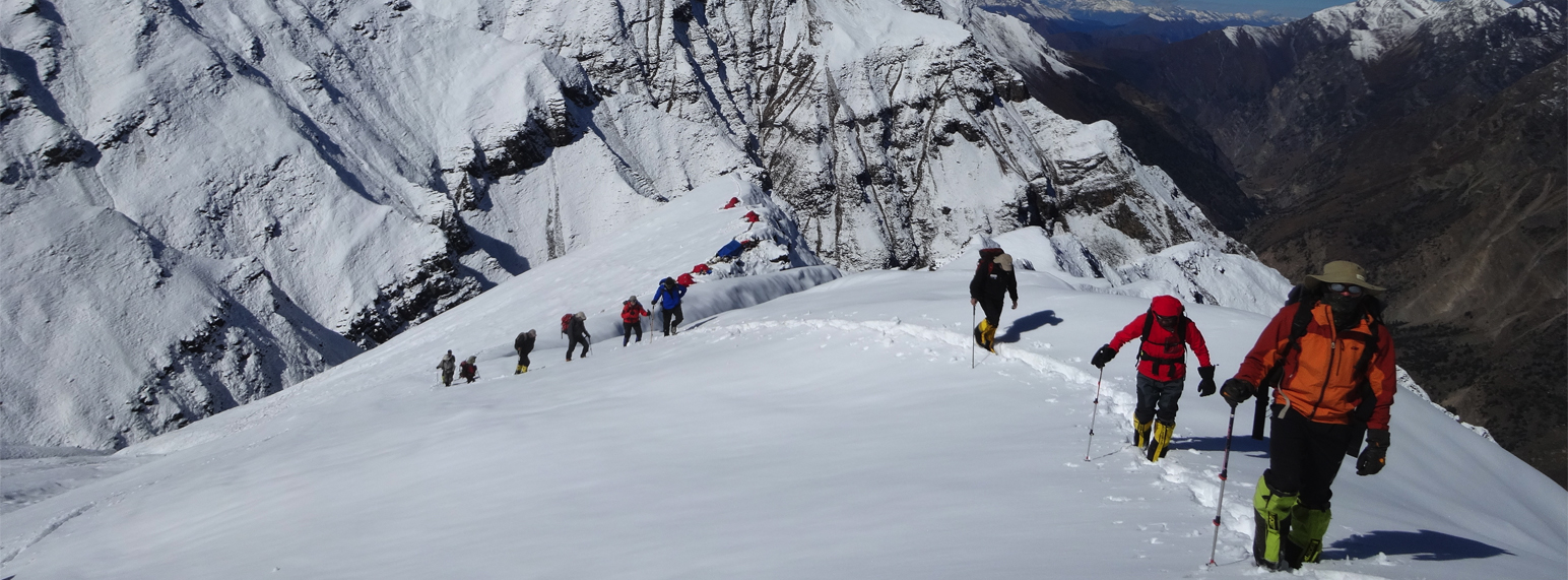Mt. Putha Hiunchuli is one of the most beautiful mountain compare to other 7000 meter high peaks of Nepal lies at western most peak of the Dhaulagiri range and is sometimes referred to as Dhaulagiri VII. It was first climbed in 1954 by Jimmy Roberts, a legendary explorer and climber. Mount Dhaulagiri range is made up of some of the world's most impressive peaks and in this range, to the west of Annapurna South of Mount Ganesh Himal, lies a long ridge at the end of which stands the serene Putha Hiunchuli. Mount Putha Hiunchuli is the last 7000 meter marking the end of the snow-capped range. Our trip begins at the trading town of Beni or from Juphal -Dunai, which is about a week's walk away from the German Base Camp situated at an altitude of 4,525m. The landscape during the approach walk is as enchanting as it is unique a mineral world made of high cliffs and deep canyons.
